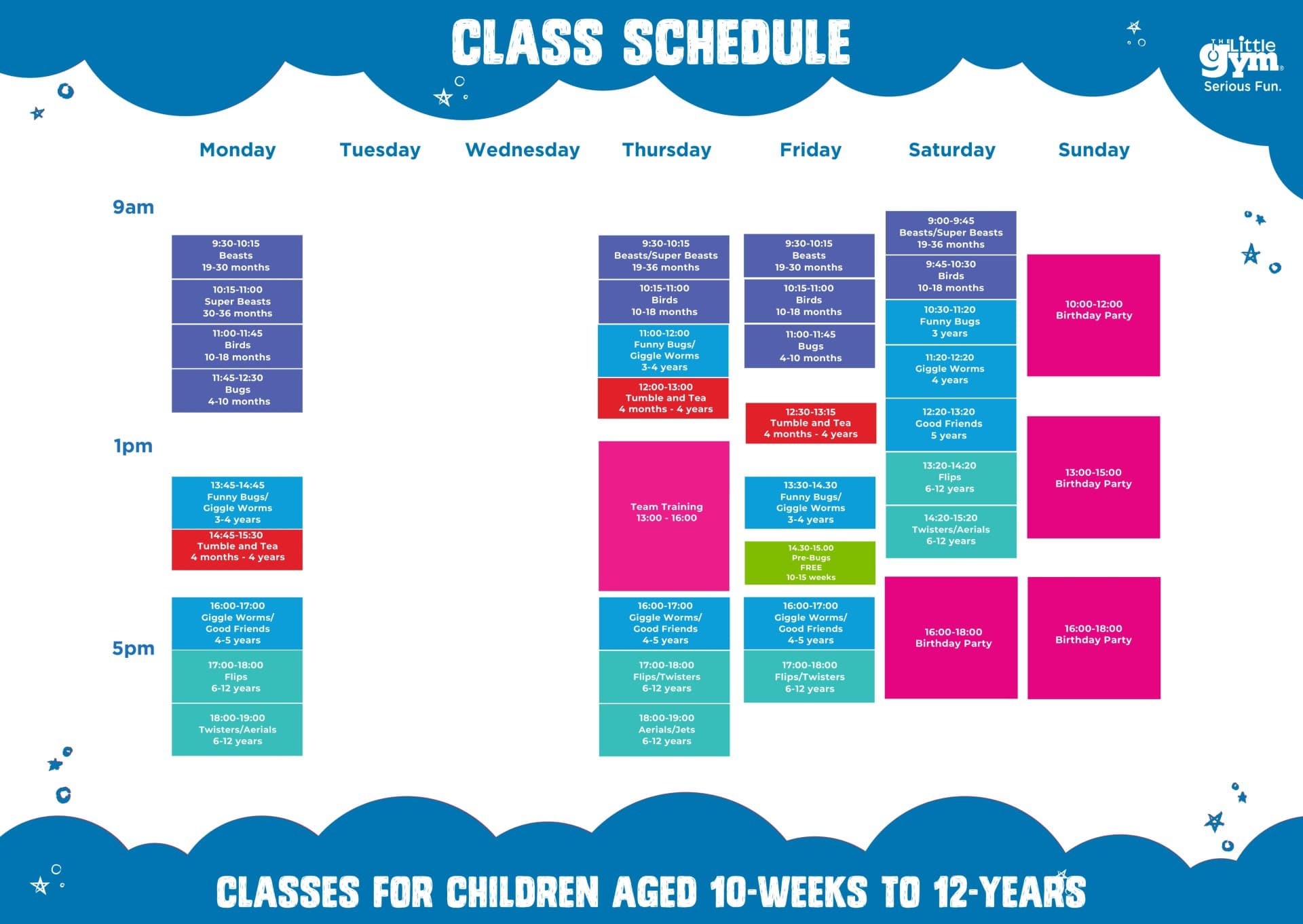 The Little Gym offers action-packed, age-appropriate weekly classes with a consistent schedule to enhance your child's overall development and become a fun part of their routine!