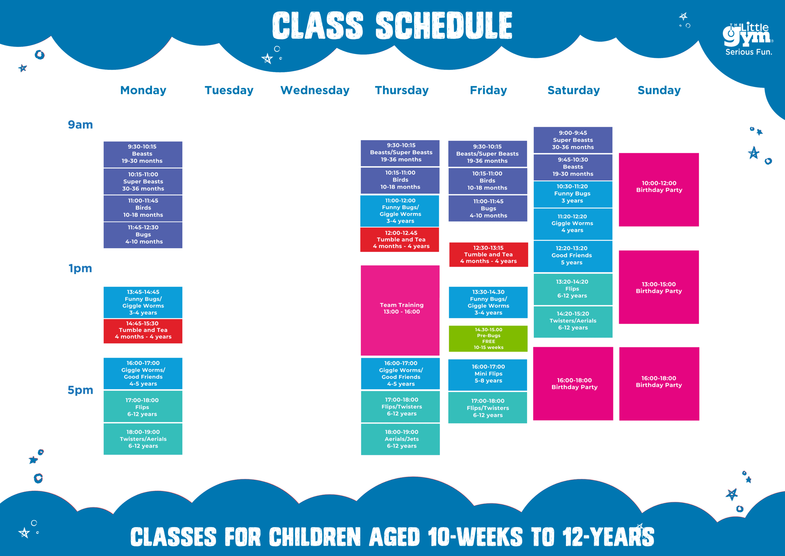 The Little Gym offers action-packed, age-appropriate weekly classes with a consistent schedule to enhance your child's overall development and become a fun part of their routine!
